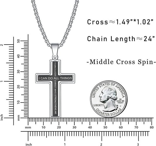 • Cross Necklace for Men, Philippians 4:13 Christian Cross Stainless Steel Necklaces for Men